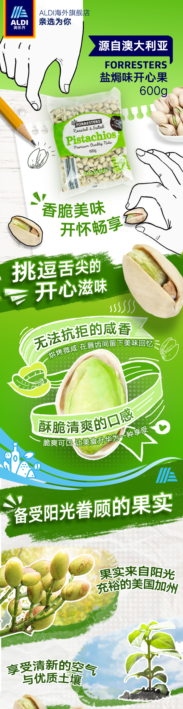 天猫ALDI海外旗舰店89.9元,下单立减26.97元,可领25元优惠券,实付37.93元到手,历史新低价,临期特价,11月份到期,介意勿拍。这款款咸味开心果,澳洲生产进口,原料来自美国加州大粒开心果,颗粒饱满,精心烘焙,天然无添加、无漂白,口感微咸,清香脆口,营养丰富。规格:600g/袋。