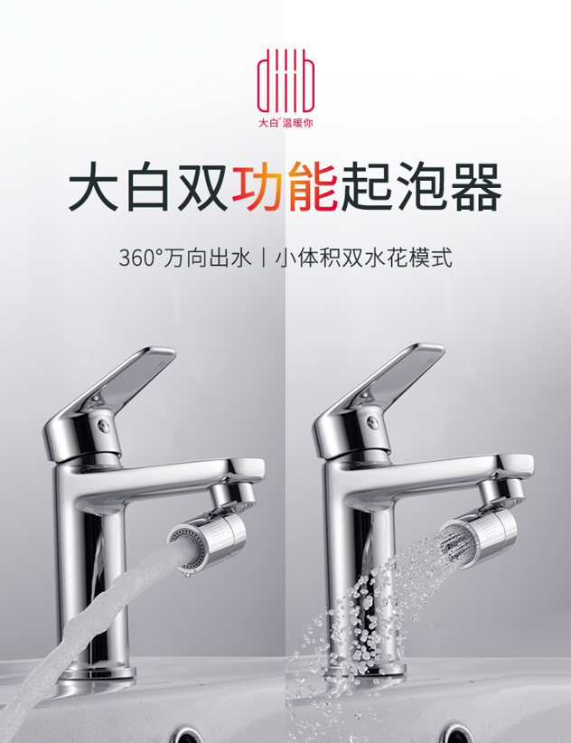 小米生态链的大白起泡器,小体积双出水模式,充分混入空气起泡,防溅水且省水,17项全球技术专利,主件全铜材质,能够有效的过滤泥沙,材料安全省心,充分保护家人的健康自带橡胶密封圈,多种水龙头使用,接口不漏水,使用更安心。