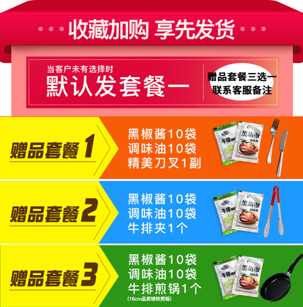 谷言牛排进口资质齐全,品质可溯源,质量可靠,顺丰空运。默认送刀叉、调味油、黑椒酱10包。如下图所示:赠品刀叉、意面、黄油、牛排夹4种组合、三种调味包可供选择(可联系客服备注)。