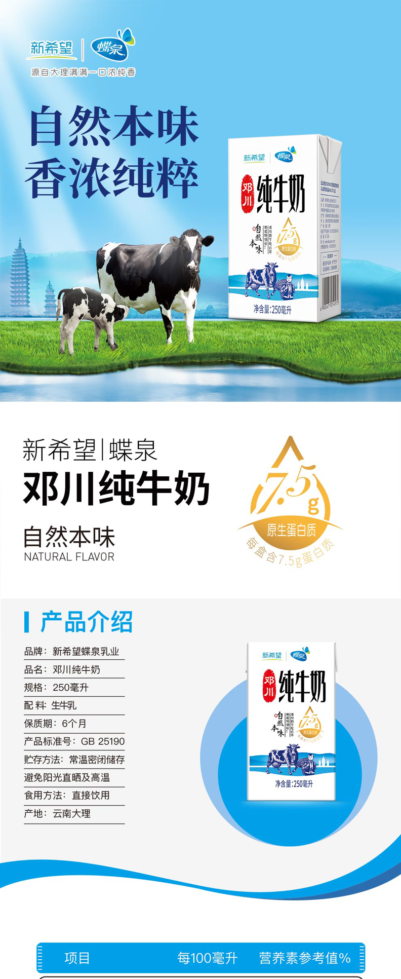 云南新希望邓川蝶泉乳业有限公司始建于1959年,中国优秀乳制品企业、绿色食品生产企业,通过了ISO9001认证,拥有荷兰、德国、瑞典进口先进生产线,年销售收入超过5亿元,其品牌“ 蝶泉”商标已在缅甸、老挝、印度等7个国家注册,年出口额最多时超过1000万美元。