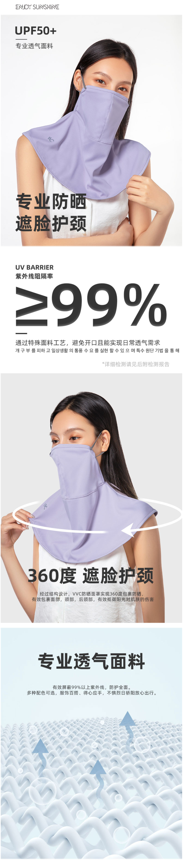这款韩国 VVC 女夏季薄款防晒面罩,经过特殊结构设计,能实现360度包裹防晒,有效包裹面部,颈部,后颈部,有效抵御阳光对肌肤的伤害。