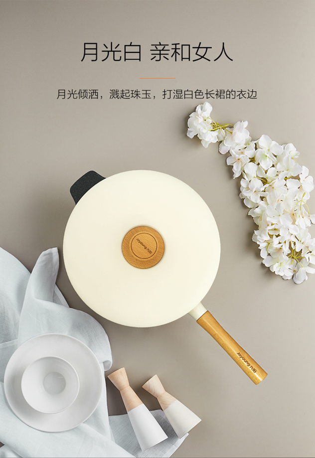 天猫超市299元,下单立减100元,可领40元优惠券,实付159元到手,赠硅胶锅铲。九阳轻奢系列炒锅,颠覆传统的白配色,月光白简约清新,锅壁重量减轻50%,仅重0.99kg,是普通炒锅重量的一半,女性也可以单手操作。锅底加厚至5.5mm,导热更均匀。锅内添加高硬度蓝宝石材料,10万次测试不露白,蓝宝石是自然界仅次于钻石的第二硬度材质,同时富含钛、铁等健康元素。