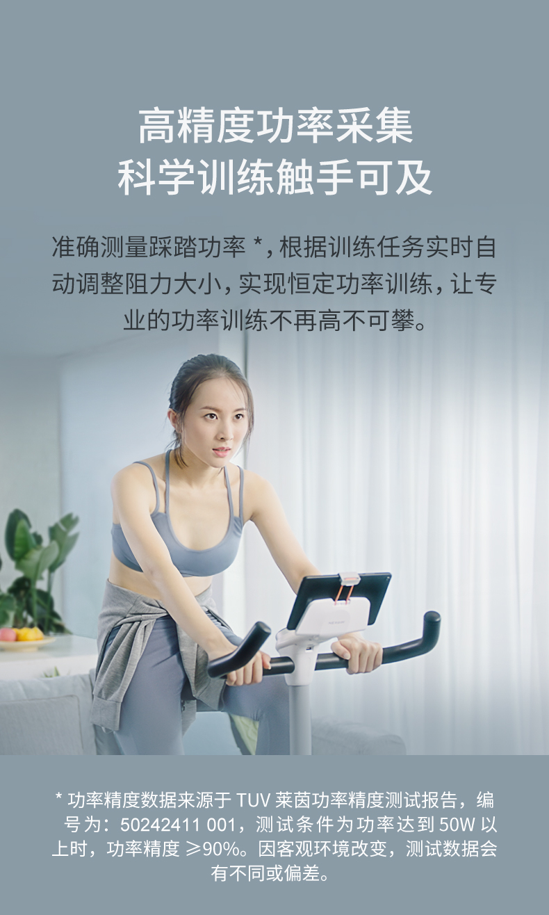 在踩踏上有高精度功率采集装置,可以准确测量出我们运动时的功率大小。根据训练任务实时自动调整阻力大小,实现恒定功率训练,运动效果加倍。