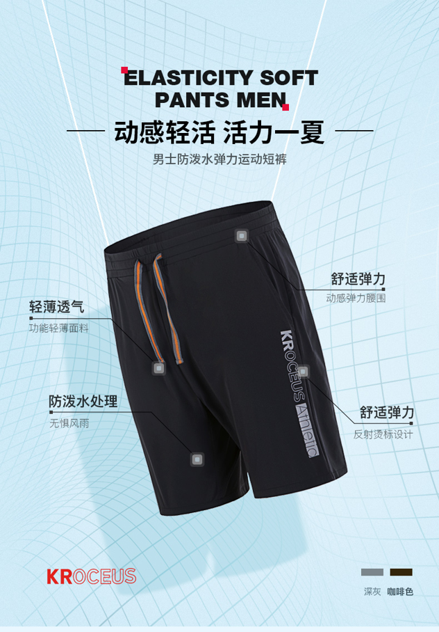 这款地球科学家男夏季透气短裤,采用自主研发的动感弹力面料(是在锦纶的基础上研发的),弹性可延展,无论是日常穿着还是跑步锻炼,都能动感随身无舒服。