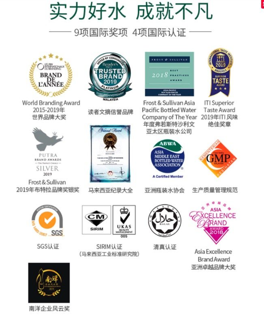连续6次荣获国际风味暨品质评鉴所(iTQi)认可,颁予顶级美味奖章(Superior Taste Award)里的最高荣誉,以荣获90%或以上的佳绩,被列入三星美味的级别。连续4年被马来西亚纪录大全收录。