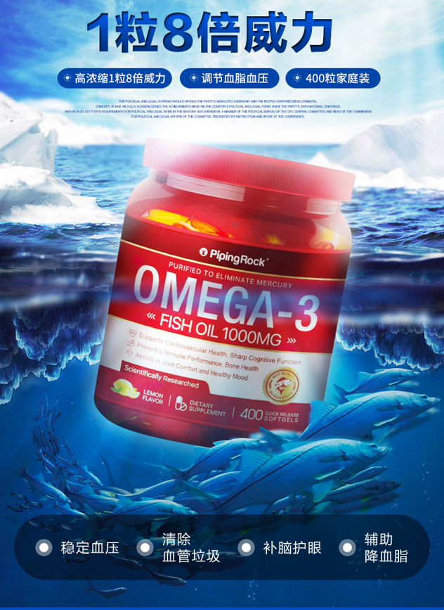 这款 PipingRock Omega3 深海鱼油软胶囊 8倍浓缩,每粒含欧米伽3鱼油1000mg,含有丰富的DHA和EPA,在改善心脏健康方面效果明显。适用于中老年、高血压、高血脂等心脑血管疾病的人群,还可辅助调节肝功能,改善视力,提高记忆力。
