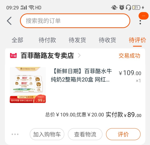 天猫百菲酪路友专卖店109.8元,可领20元优惠券,实付89.8元到手,规格是200ml*20盒。生产日期是2020年7~8月。