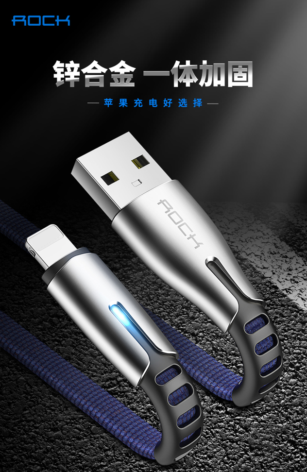 这款ROCK iPhone数据线外部是锌合金接头,金属触感比较高档,内部是优质纯铜芯,耐用不易坏,Lighting接口处带有激活芯片+呼吸灯,充电不弹窗、有电量提示。数据线有好价时,适合多买几根备用。
