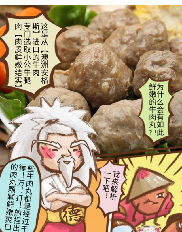 采用澳洲进口牛肉,只使用腿肉,不含硼砂、弹力素、防腐剂,使用铁棍捶打,使肉成浆而纤维不断,在经过浸入蟹眼水中定型,使其口感弹爽鲜嫩,更加劲道。规格:牛肉丸170g*3袋+牛筋丸170g*3袋,共1020g。