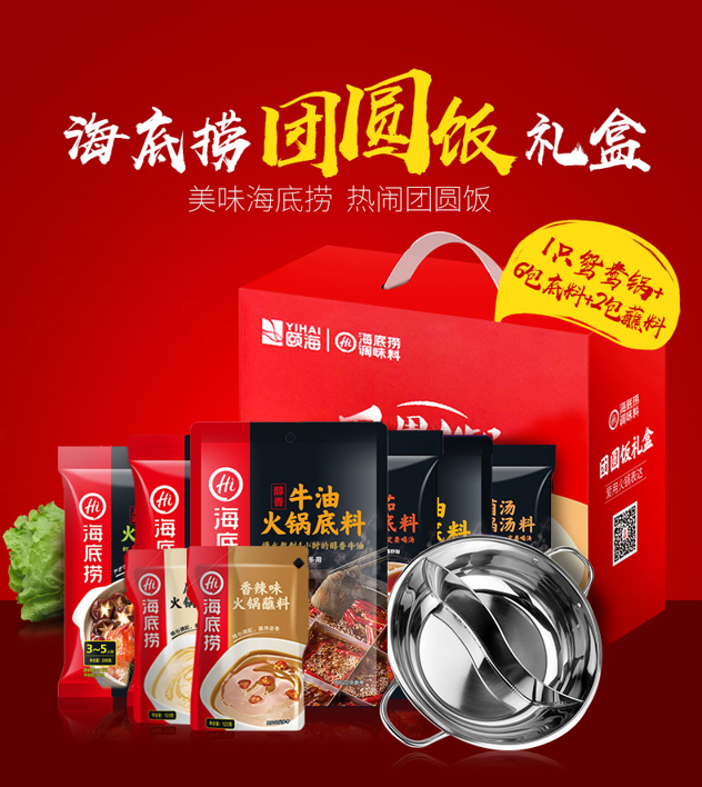 海底捞同款礼盒,具体包含醇香牛油火锅底料 150g*3、番茄火锅底料 200g、菌汤火锅底料 110g、清汤火锅底料 110g、原味火锅蘸料 120g、香辣味火锅蘸料 120g、直径30cm鸳鸯锅,底料无需炒制,直接煮食,简单方便,天冷了就适合在家打火锅~
