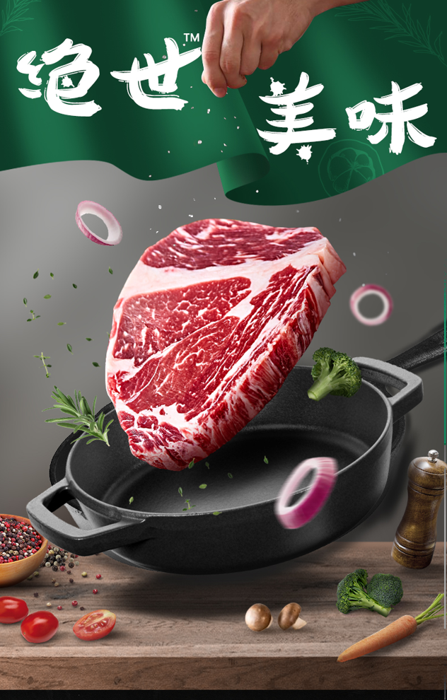 手工分割去膜,搭配天然香料混合腌制,不含工业添加剂,那种规则的圆饼形牛排,一般都是用碎肉粘合成的拼接牛排,而这个绝世牛排不规则的外形显然是原切的。