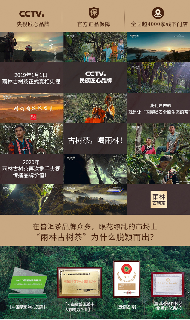 “雨林古茶坊”央视报道品牌,是一家手工制古树普洱茶的茶叶品牌,“雨林古茶坊”全称勐海雨林古茶坊茶叶有限责任公司,成立于2012年,注册资金11000万,斥巨资在云南西双版纳建立古茶坊(已落成85座古茶坊),全国超4000家门店,首家提出 “由本村寨的少数民族师傅做本村寨的茶”的制茶原则,打造高品质古树普洱茶。