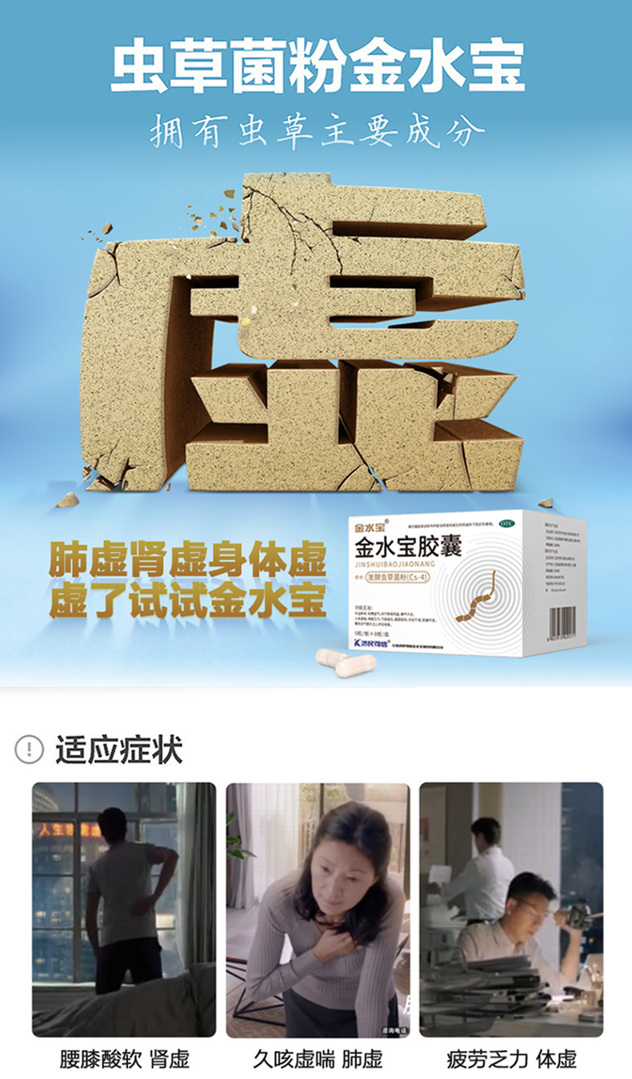 金水宝是完完全全的中成药,核心的成分是人工培育的虫草花,可以阴阳双补,也就不用再担心吃六味地黄丸加重自己肾阳虚的症状了,而且因为金水宝有一定的促性腺功能,很多群友吃后也说欲望增强了。