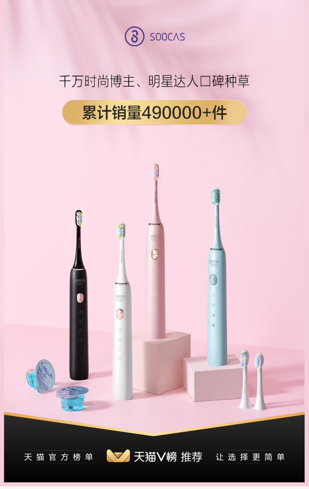 天猫素士旗舰店,单支款329元,下单立减10元,可领30元优惠券,实付289元到手,有粉色、黑色、白色、薄荷绿色可选,配3个刷头和旅行收纳盒。