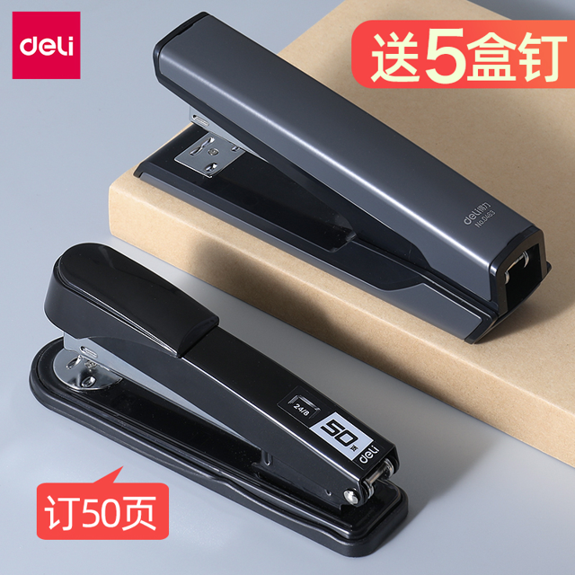 deli 得力 0352 迷你订书机套装 含订书钉1盒,订书机整体呈流线圆润造型,配以蓝色、粉色机身,灵动亲和。订书机最大装订页数为25页;适配的订书钉型号:24/6(12#)订书钉;钉子横向长度为12mm,订脚长度为6mm;机头采用耐磨材质制造,耐磨耐用,机身为不锈钢材质;清新可爱的包装图案和颜色,给你学习生活增添乐趣。