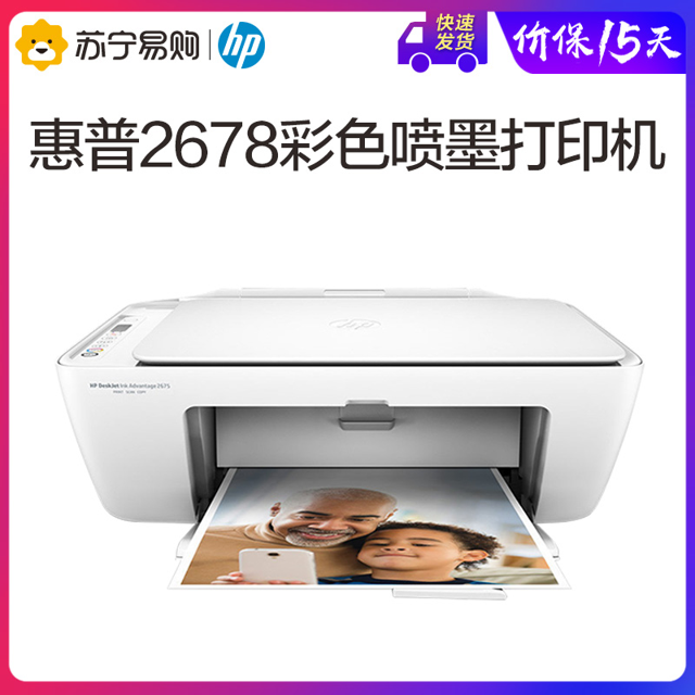 此款惠普DeskJet 2678喷墨打印机,小小的机身,亲和的外观,暖暖的白色,置放在家具环境中,颇有些小清新、时尚的感觉。具备打印、复印、扫描三大功能。可通过无线网络链接手机、电脑等设备打印,最大打印幅面为A4,适配HP680黑色墨盒、HP680彩色墨盒。扫描分辨率达1200dpi。