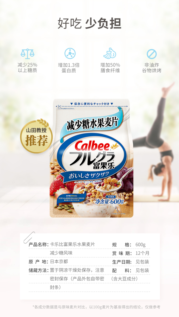 卡乐比的水果麦片非常好吃,口味丰富,可直接开袋干吃,一般作为早午餐泡牛奶、豆浆吃,泡在酸奶里也非常美味。这款麦片生产于日本北海道,非辐射污染区,同时许多原料还是进口的,安全上不用担心,国际官方旗舰店,来源渠道也有保障,可以放心食用。