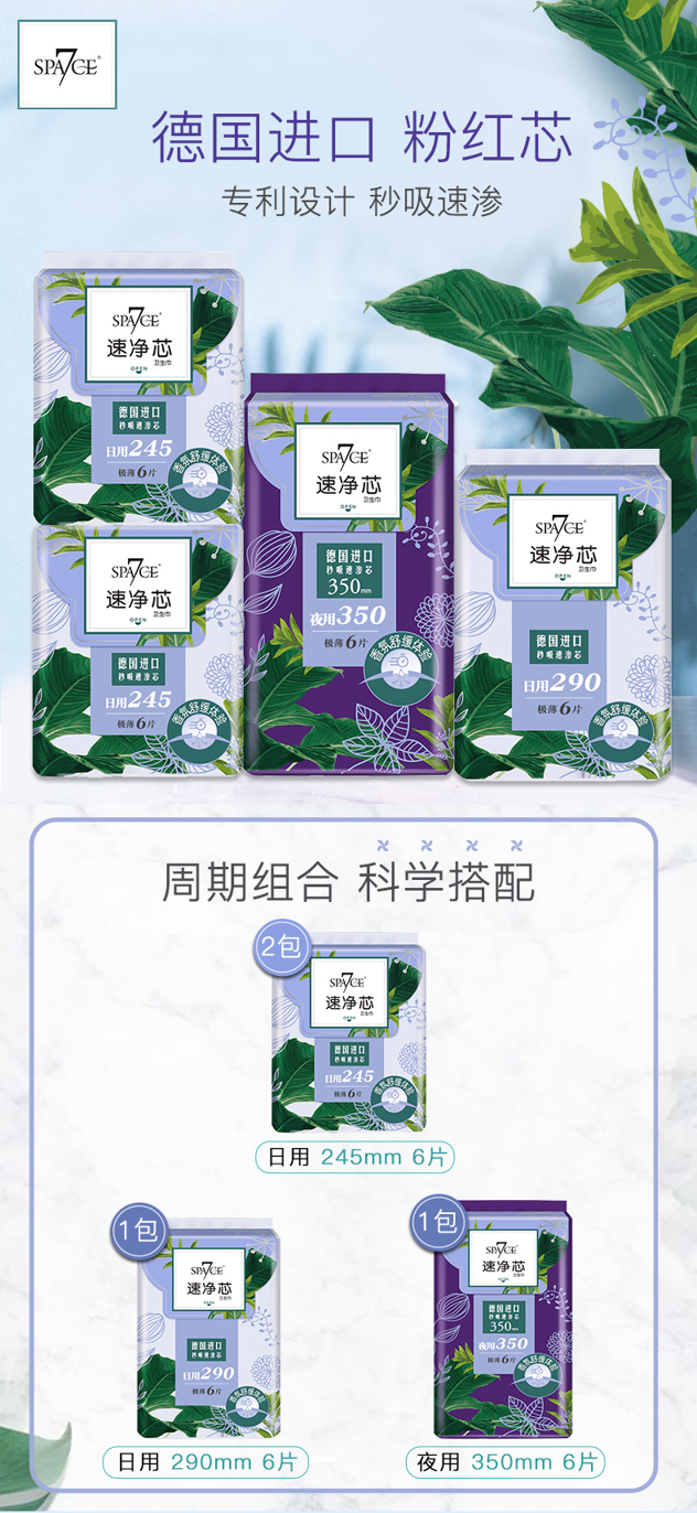 天猫spa7ce旗舰店54.9元,下单立减8元,可领20元优惠券,实付26.9元到手日夜245mm2包12片+290mm1包6+350mm夜用1包+护垫40片,共64片!一片不到4毛,全新净秘透气产品,大品牌,隐形速渗,速吸收,零反渗,干爽一整天。领券链接点此