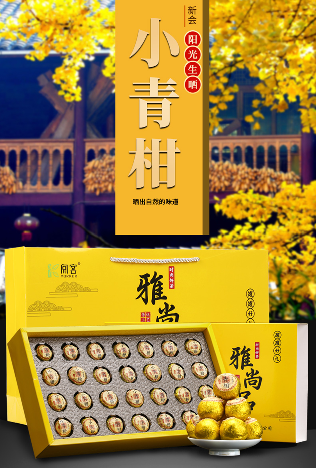 优选新会新鲜的的柑果,和源自云南勐海的陈年普洱,金芽微漏,拒绝茶梗,让柑果与普洱香充分交融,不用任何技术催化,冲泡出的桔普茶,口感醇厚润滑,清甜润泽,柑皮厚实,叶底油亮,果香浓郁,20泡仍有余香。