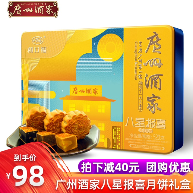 天猫广州酒家宏侨专卖店目前售价138元 ,下单1件立减40元,使用满98元减20元,实付78元包邮 ,近期好价,喜欢的小伙伴别错过了,快下单吧。
