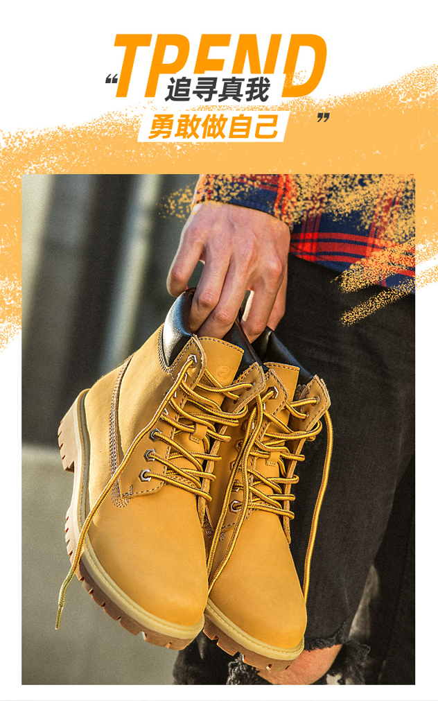 做大黄靴最正宗的虽然是踢不烂(Timberland),不过价格不便宜,700-1000好几不等,大黄靴不属于专业户外鞋,更偏向潮流路线,受好莱坞电影的影响,搭配牛仔裤倍儿爷们。为了款式好看不妨考虑这款,传统大黄靴造型,超纤贴皮鞋面,质感细腻,高帮鞋型,挡风耐磨性能优越,防撞鞋头,耐磨橡胶鞋底,走路防护。