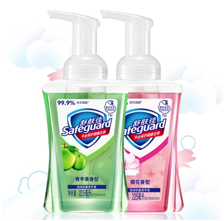 Safeguard舒肤佳是宝洁旗下个人洗护品牌,在国内外的市场占有率都非常高。这套泡沫洗手液套装,含青苹果味和樱花味225ml各1件。使用方便,按压既出泡沫,泡沫丰富细密,味道清甜,相比于乳液质地的洗手液更易冲洗干净,温和洁净不会残留于肌肤~