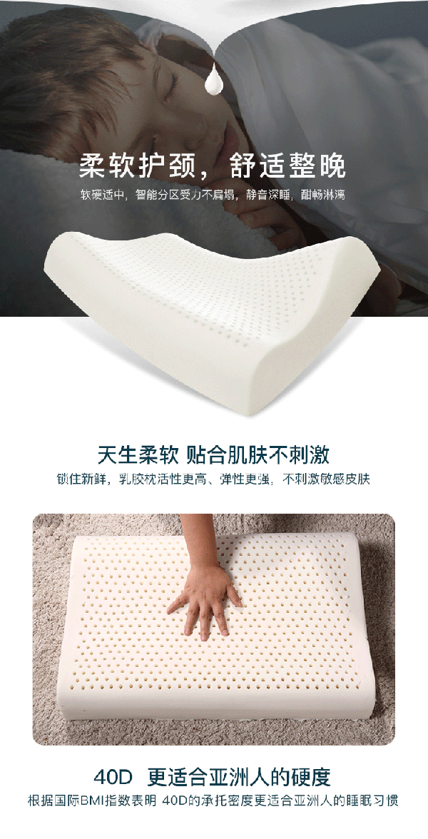 乳胶枕的内部蕴含千万蜂窝透气孔,自然睡眠不闷热,外部对冲层冲孔排气设计,散热祛湿,循环疏导;同时还能减少人体与纤维之间的摩擦,避免产生静电。
