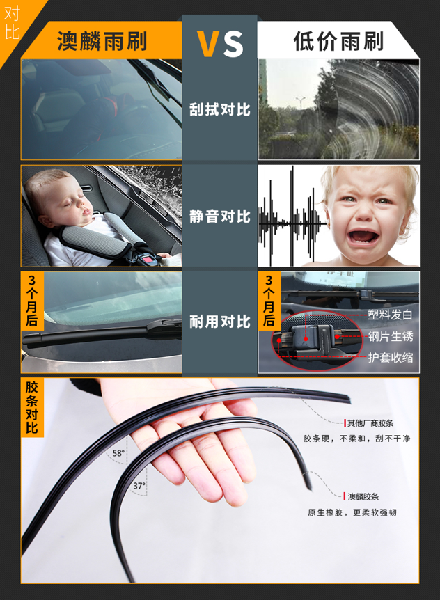 天猫澳麟旗舰店55.9元,可领50元优惠券,实付5.9元到手,第1款此价,型号备注,不合适包退。厂家原装直销无骨雨刷,专用胶条,更高清、更静音、更耐用。采用记忆钢片和高橡胶胶条,压力均匀,贴合玻璃刮拭更加清晰。采用高品质胶条,减少磨损。经过几十万次的刮拭测试,确保长久不变形。