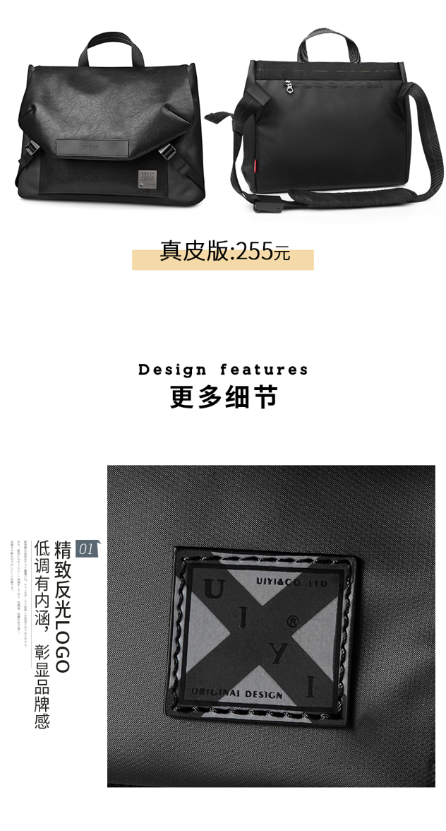=93元 到手价。有三款可选,面料有所差别,分别是涤纶/PVC皮革/真皮拼接,价格不同,款式相似,可按需选择。这款男士斜挎包,打破传统背包的单调印象,正反面艺术拼接,防盗搭扣设计,休闲感十足。