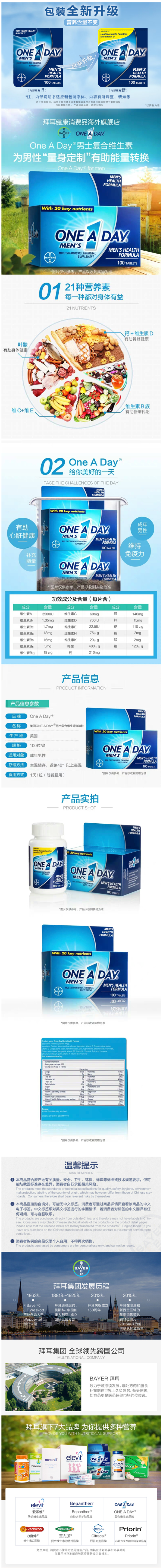 One A Day维生素是拜耳公司属下的系列产品,总部位于美国匹兹堡,是拜耳公司下属单位。这款One A Day 男士复合维生素,美国原产,是一款专为男性定制的多重复合维生素,包含各种维生素和微量元素,为人体提供全面营养,补充人体日常所需要,维持免疫力,补充能量,规格是100粒,一天一粒,适合成人服用。