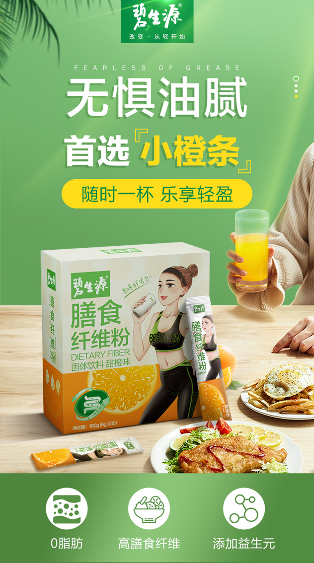 便秘克星,刮油神器,碧生源膳食纤维粉,带货女王薇娅力荐,天然车前子壳,含丰富膳食纤维,可包裹油脂,不被肠道吸收,吸油刮油排油,甜橙口味,0脂肪,放心喝,特别添加菊粉益生元,清肠同时维护肠道健康,轻松喝出A4腰。