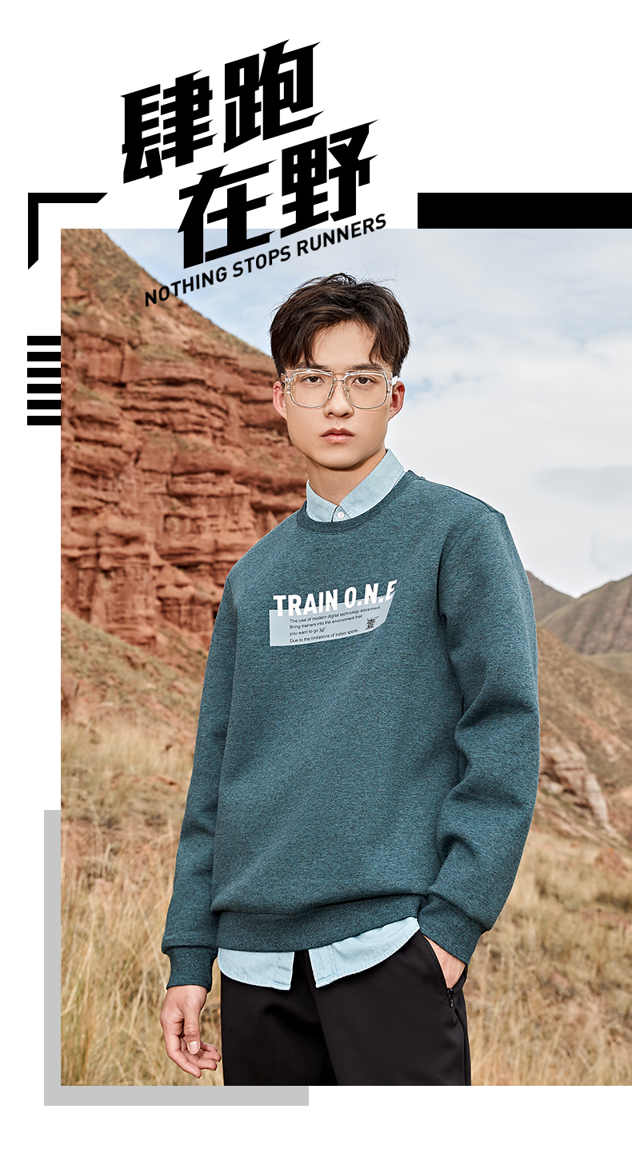 在款式上,合身版型,不挑身形都能穿,前胸是“型炼合壹( TRAIN ONE )”故事主题及文案表现系列故事,增加趣味性;简约大气罗纹领口和袖口,贴合舒适不紧绷。
