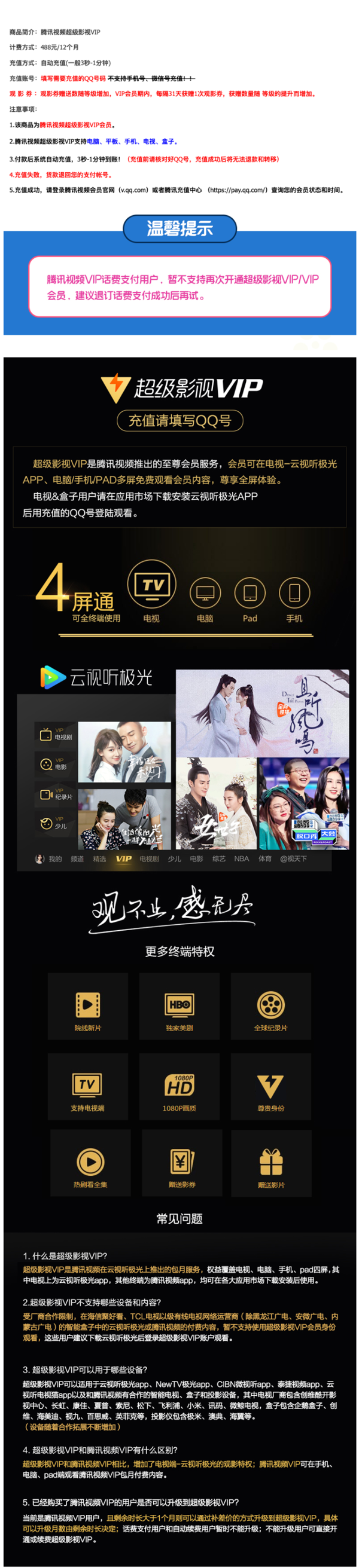 1.该商品为腾讯视频超级影视VIP会员。