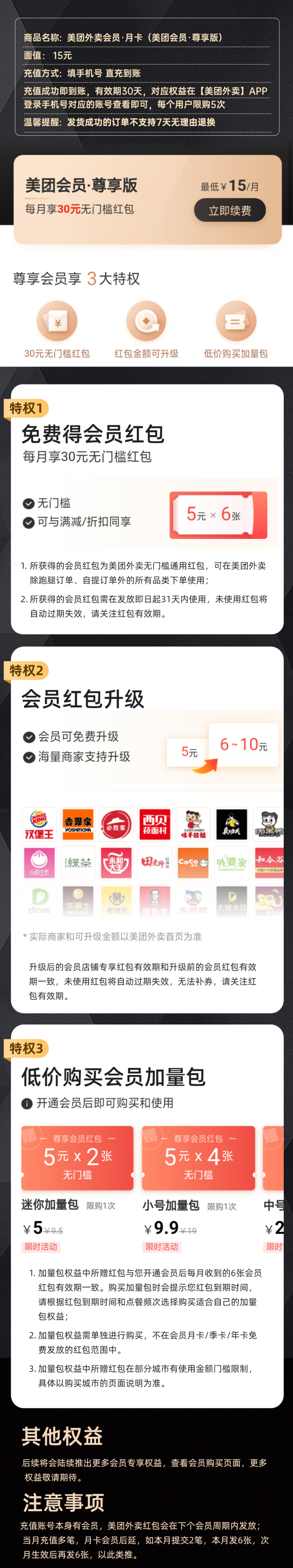 天猫瑞联点卡专营店11元,可领3元优惠券,实付8元到手;平常在美团售价15元,经常点外卖的可以考虑入手。美团外卖会员月卡30天,含6张5元外卖红包,手机号直充,秒冲到账。领券链接点此