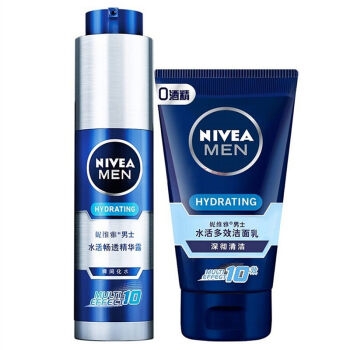 套装包含妮维雅水活畅透精华露(小蓝管)50g+水活洁面50g。男士水活畅透精华露适合干性及缺水肌肤使用,质地水润清爽,能快速吸收,滋润不粘腻,不含酒精,按压包装方便卫生,且能够保持内容物活性。水活洁面尤其适用户缺水性肌肤,可温和清洁,泡沫丰富,使用后清爽洁净。