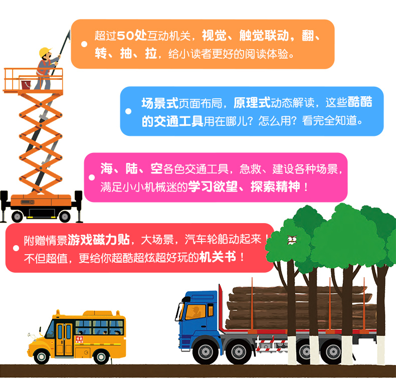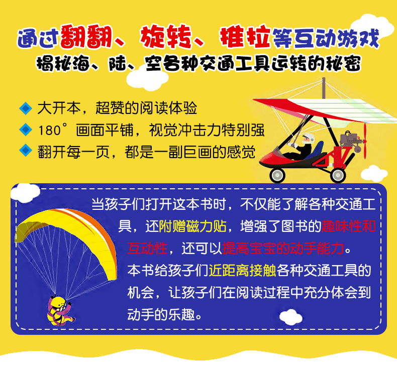 超过65个活动图片和互动机关,可以通过翻拉、转动等方式,锻炼孩子的动手能力,是一本给孩子最好的科普游戏机关书,适合0~10岁儿童科普。
