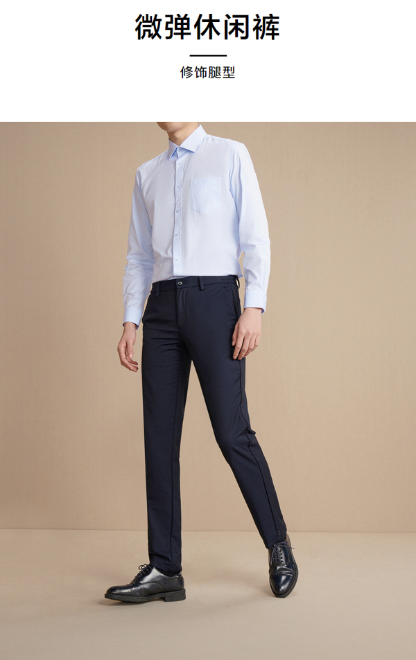 这款是海澜之家当家的休闲裤型,适合春夏秋三季穿着,面料为78%聚酯纤维+19%粘纤+3%氨纶,上身具有细腻亲肤的触感,拥有不错的弹力,穿着舒适不紧绷,聚酯纤维让裤型更加立体,长期穿着不易皱不走形。