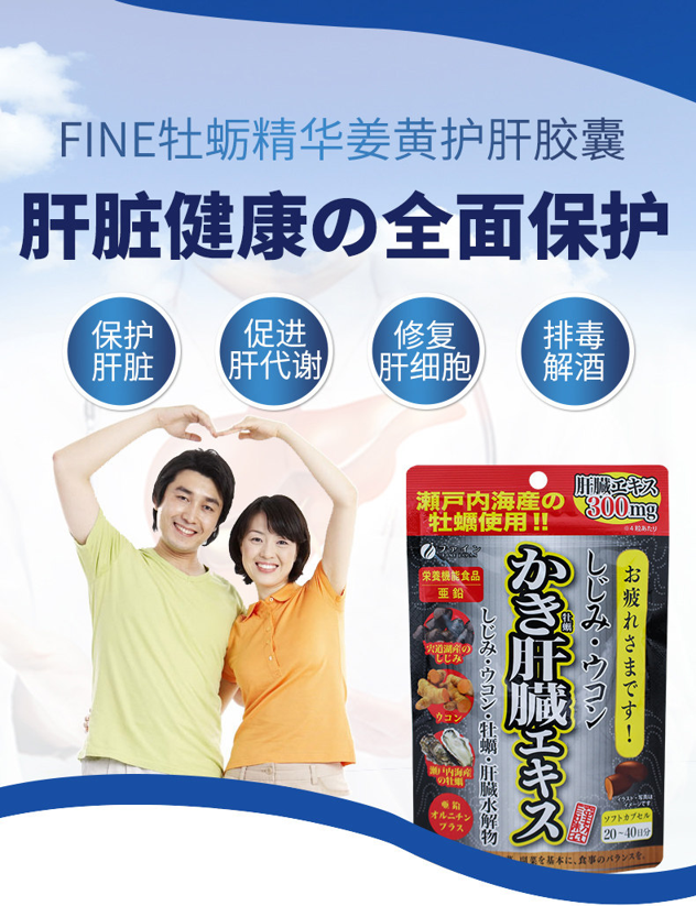采用无任何污染的日本濑户内海国产100%新鲜牡蛎,富含18种氨基酸、肝糖元、B族维生素、牛磺酸和钙、磷、铁、锌等营养成分,具有滋补强壮、润肺补肾、宁心安神的作用,配合日本国产的秋姜黄,可有效地帮助分解和代谢酒精,降低酒精产生的效应,大幅度减轻肝脏负担,故而起到解酒醒酒的作用。