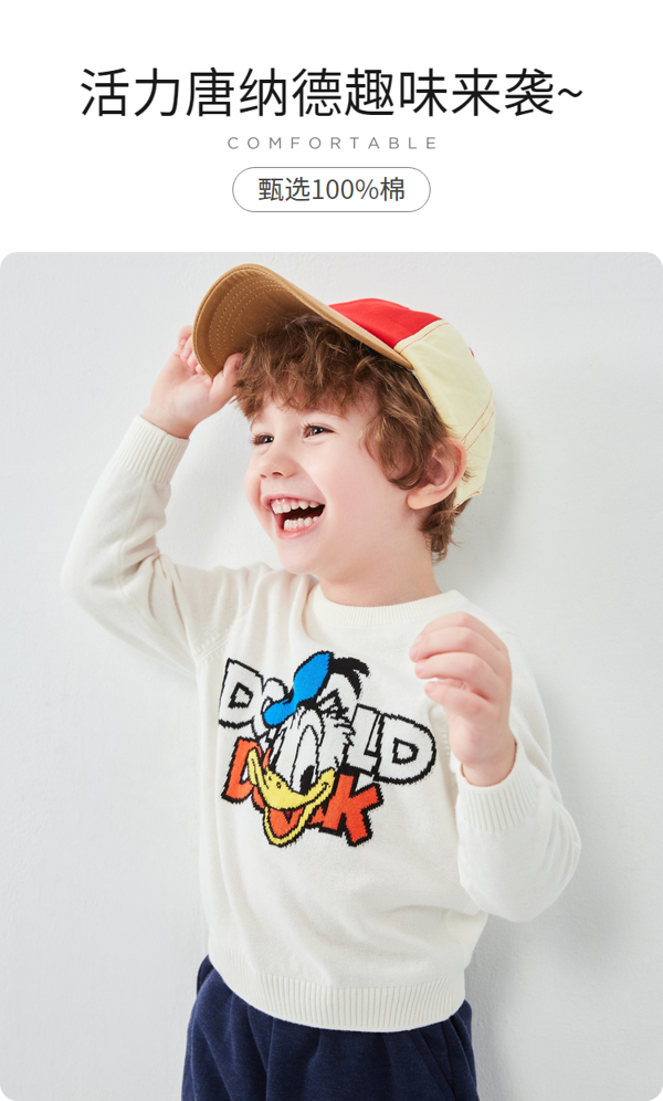 淘宝巴拉巴拉品牌企业店99.9元,可领40元优惠券,实付59.9元到手,两款可选。巴拉巴拉品牌官方店,线下各大实体店同款售卖。采用100%纯棉面料,健康舒适,柔软透气,良心品质。可爱唐老鸭针织图案,衣领、下摆和袖口都做了处理,不易脱线。针织宽松版型,基本不挑身材,舒适百搭。
