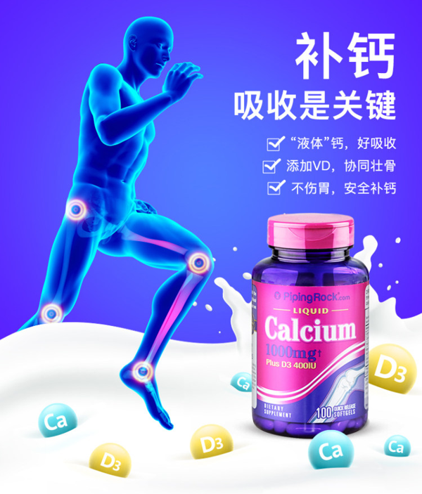 • 美国进口 PipingRock 中老年液体钙+VD软胶囊 100粒*2瓶