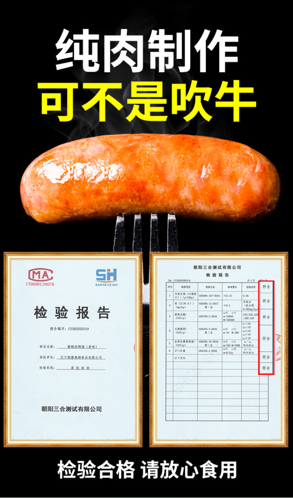 正宗原味纯肉香肠,精选优质肉,手工灌肠,外酥内嫩,无论是微波炉、香煎,还是炒菜,味道都超级棒