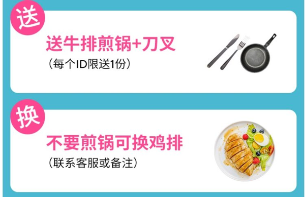 天猫小牛凯西食品专营店128元,满256元减88元活动,下单2件可领50元优惠券,实付118元到手,包顺丰冷链。送10包黑椒酱,精美刀叉1副,煎锅1个(煎锅可换鸡排,下单备注即可)。