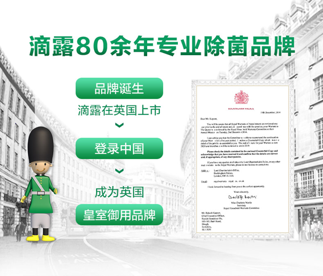 Dettol滴露是致力于在家居和个人护理方面的英国品牌,于1993年进入中国,产品包括滴露消毒液、滴露衣物除菌液、滴露健康沐浴露、滴露健康抑菌香皂和滴露抑菌洗手液等。