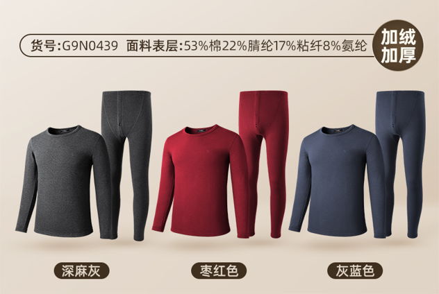 这款金利来秋衣套装,面料采用精梳棉加腈纶、氨纶混纺而成。腈纶又被称为“人造羊毛”,在舒适度上,是仅次于纯羊毛、蚕丝等高档面料,拥有羊毛轻盈细腻的特点,穿着不压沉,同样和羊毛一样是理想的贴身衣物面料之一。