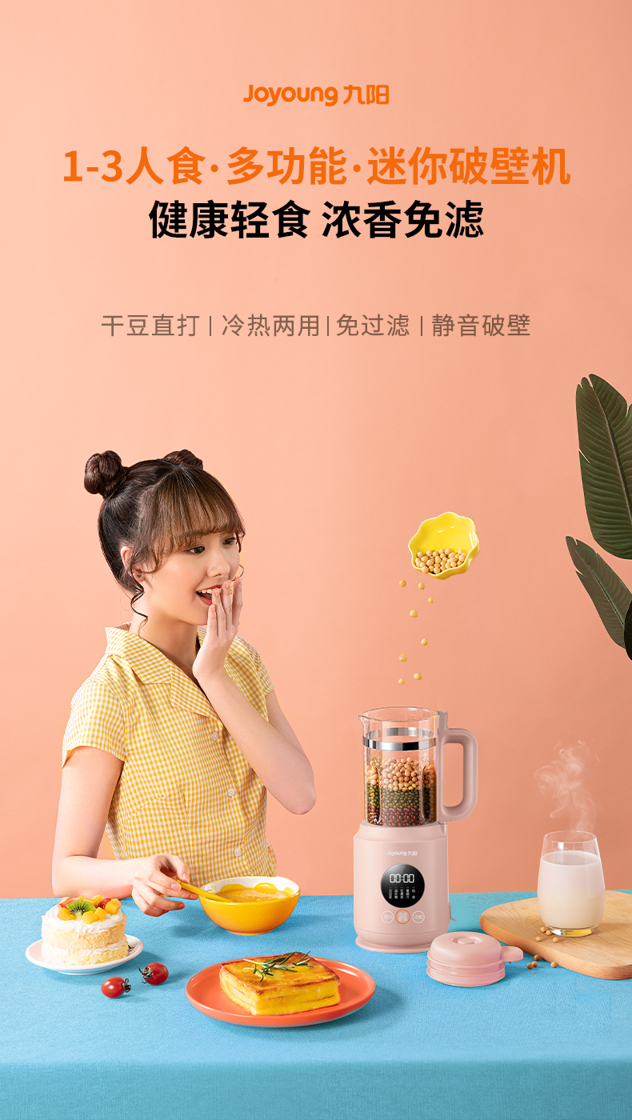 天猫九阳中卓鼎专卖店399元,可领150元优惠券,实付249元到手,这款破壁机专为小家庭设计,420ml小容量,无需担心做多浪费的问题。