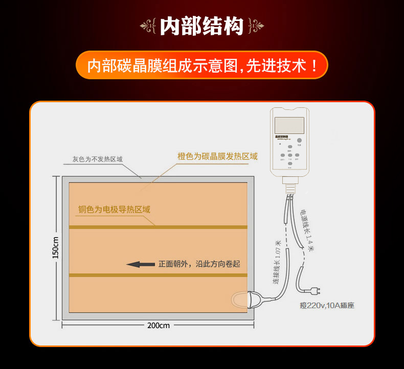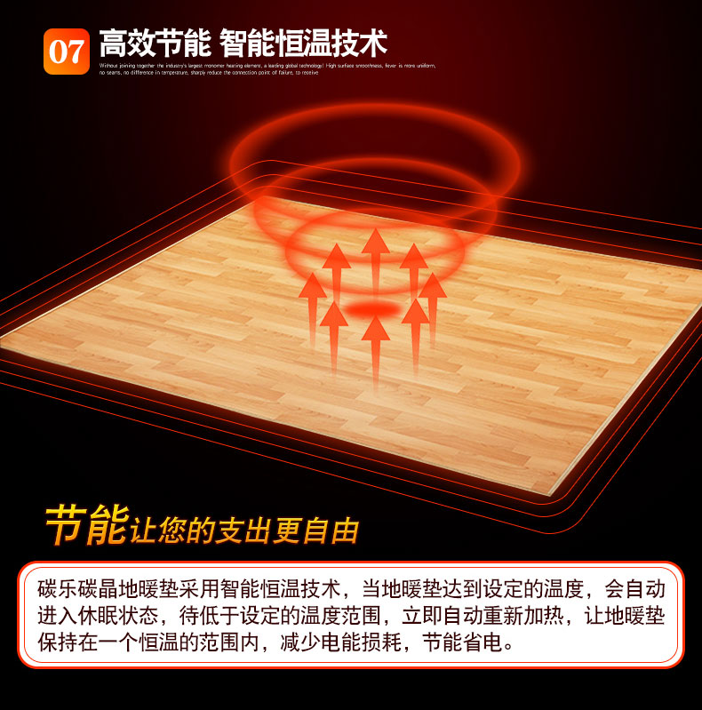还采用了智能恒温技术,当地暖垫达到设定的温度后,会自动进入休眠状态,待低于设定的温度范围后,立即自动重新加热,让地暖垫保持在一个恒温的范围内,减少电能损耗,节能省电。