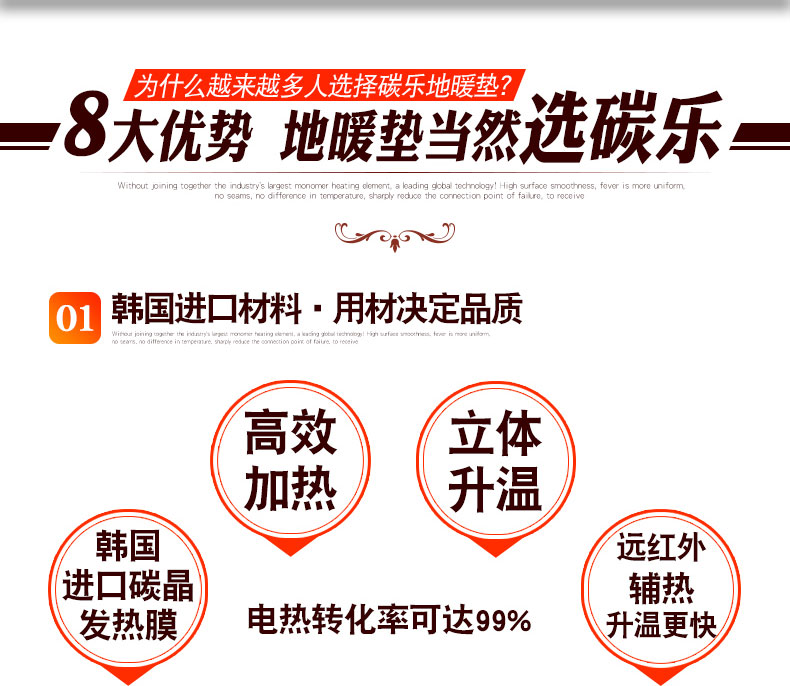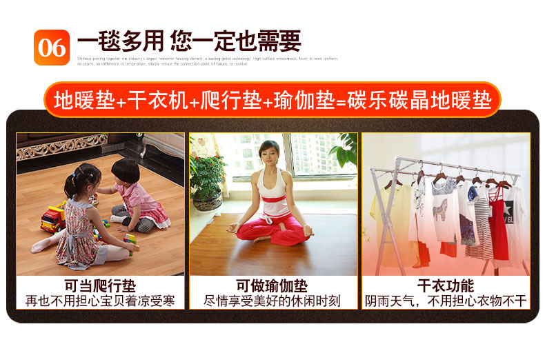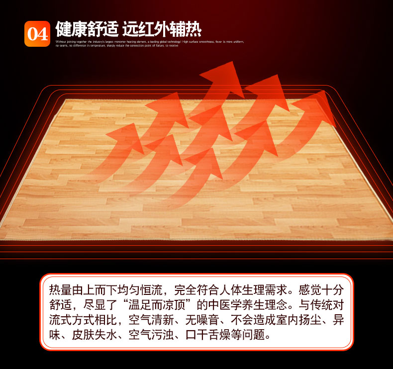 硅晶地暖作为新型采暖电器,具有发热快、制热连续、少占空间、节能省电的优点。