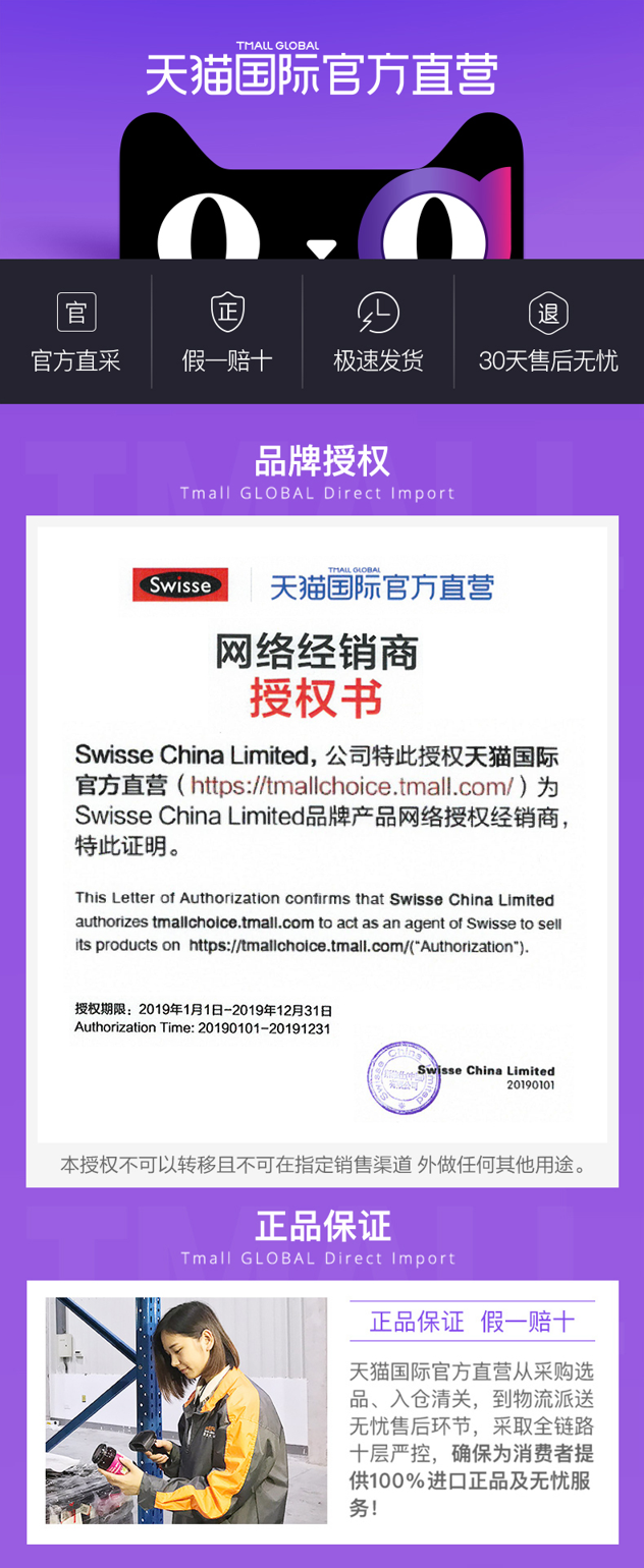 Swisse公司始创于本世纪50年代末成立于澳大利亚墨尔本,澳洲自然医学疗法的先驱之一。超过25年的科学研究和临床试验的基础,澳洲最知名的保健品牌,其原料采购和生产工艺均通过全球最高处方药的生产标准TGA。这个牌子的保健品在澳洲还是比较出名的,之前几年没有天猫国际的时候,很多朋友都是代购这个牌子的保健品。