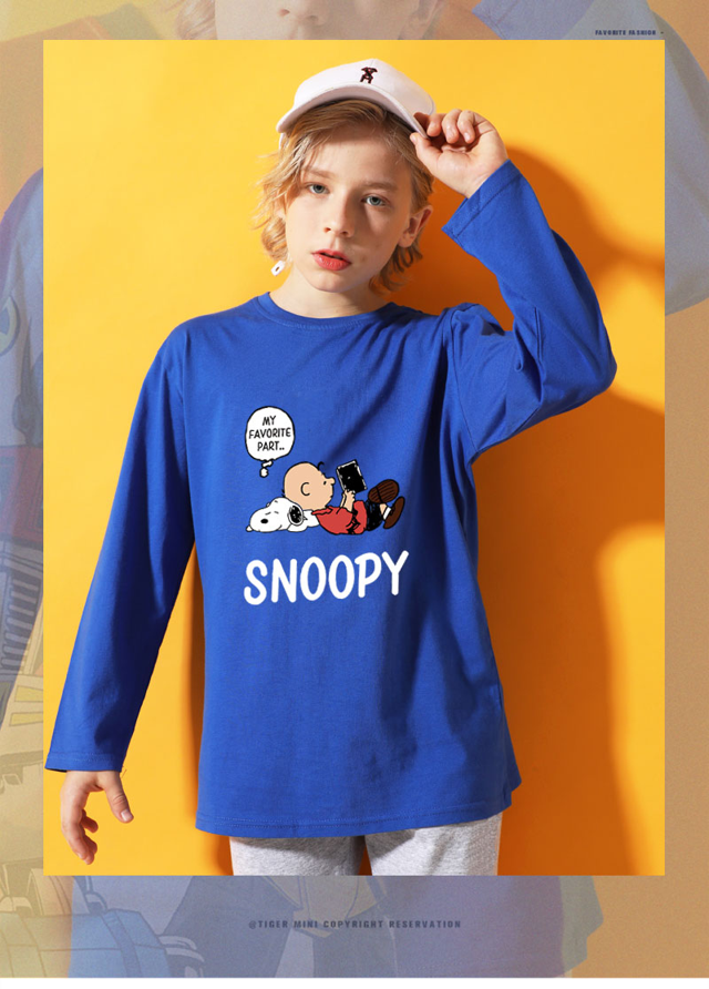天猫史努比明达众兴专卖店49.9元,可领30元优惠券,实付19.9元到手,多款式可选,男童女童都有,尺寸码数齐全。一线大牌,品质放心。儿童100%纯棉材质长袖T恤打底衫,亲肤细腻,吸湿透气性好,适合初秋穿着。面料亲肤柔软,胸前logo印花,简约又百搭。