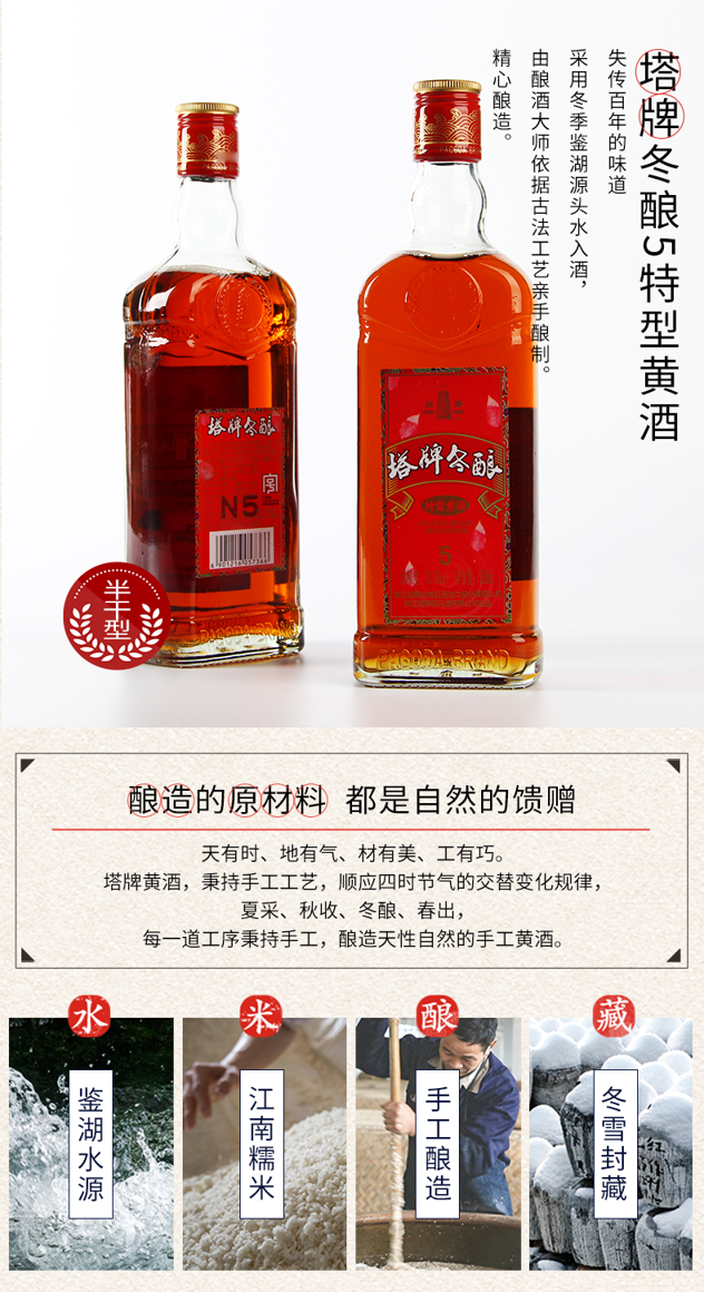 鲜黄酒中含有大量人体所需的氨基酸,有养身的功效,这款是半干型口味黄酒,总糖度在15.0-40.0g/L,规格:500ml*8瓶。精美礼盒装,无论自饮还是送礼都不错。